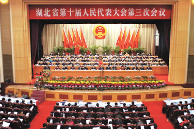 荊楚網消息(湖北日報) 記者余凱報道:湖北省第十屆人民代表大會第三次會議昨日上午在武昌隆重開幕。肩負全省6000萬人民重托的600多名代表聚集一堂,共同繪制湖北2005年發(fā)展藍圖。