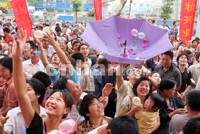 位于銷品茂北側(cè)的中商百貨銷品茂店昨日也同時(shí)開(kāi)業(yè)。為吸引顧客眼球,中商百貨還在開(kāi)業(yè)慶典時(shí)送出了1個(gè)價(jià)值7000元的鉆戒和5條鉑金項(xiàng)鏈,6位市民搶得“好運(yùn)”。
