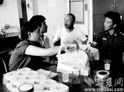64歲的程婆婆拉著曉軍(化名)的手說(shuō):“兒啊,快看誰(shuí)來(lái)了?”曉軍抬起頭,發(fā)現(xiàn)接見室里除了母親外,還有武昌紫陽(yáng)街起義門社區(qū)黨委書記袁先高、管段民警方文等一行8人,手里提著紙巾、拖鞋、毛巾等日常用品,還有他最愛吃的鴨脖子和鹵蹄。