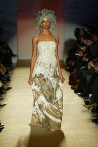 時尚的實驗---如它所被定義的那樣---以擁有無數(shù)的褒獎和特殊的證明為榮耀,并在世界范圍內(nèi)擁有無數(shù)的追隨者。她設計的多樣性使將她帶到比利時首席設計師Micha Van Hoecke的服裝秀去設計高級女裝。她明了且有棱角的風格在她對顏色、材料和傳統(tǒng)的運用上無不發(fā)揮的淋漓盡致。Marella Ferrera的風格被描繪成既冷靜又線條明朗,通過對于一些原始材料的使用,像熔巖,玻璃,海芋,百合,無色水晶,刺繡雕刻,她常常創(chuàng)造出一些微型的藝術品.西西里亞、拉瓦、十勝石、陶瓦、無色水晶、銅、紙草以及紡織紙品,軟木和棕櫚樹根、皮革、緞帶、所有的蔬菜和動物的毛皮等等都會成為她穿著的重要的靈感來源。"...服裝必須是完美協(xié)調(diào)穿著者的東西,而不能讓人成為服裝的傀儡..."