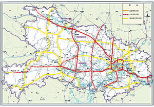 預計5年后,“六縱五橫一環(huán)”的骨架公路網(wǎng)將基本形成,我省與中部地區(qū)省份將全部實現(xiàn)高速對接。其中河南方向高速出口4個、安徽方向3個、江西方向2個、湖南方向3個、重慶方向1個、陜西方向1個!昂备咚俟穼⑹且粡堓椛淞姷拇缶W(wǎng)。”省交通廳廳長林志慧自信地說。