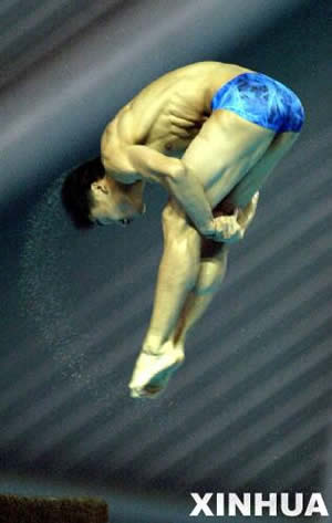 9月28日,陜西隊選手田亮在男團(tuán)十米跳臺的比賽中。最終,他以275.25分的成績獲得該項目第一名。當(dāng)日,在南京進(jìn)行的第十屆全國運(yùn)動會跳水男子團(tuán)體比賽中,陜西隊以2155.25分的總成績獲得銅牌。(新華社記者孟永民攝)