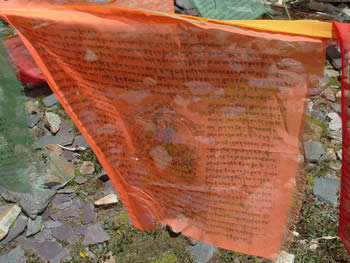 西藏有隨處可見的掛在山頂山口、江畔河邊道旁以及寺廟等各處被認為有靈氣地方的五彩經幡。之所以被稱作經幡,是因為這些幡上面都印有佛經,在信奉藏傳佛教的人們看來,隨風而舞的經幡飄動一下,就是誦經一次,在不停地向神傳達人的愿望,祈求神的庇佑。這樣,經幡便成為連接神與人的紐帶。風幡所在即意味著神靈所在,也意味著人們對神靈的祈求所在。風幡寄托著人們美好的愿望。