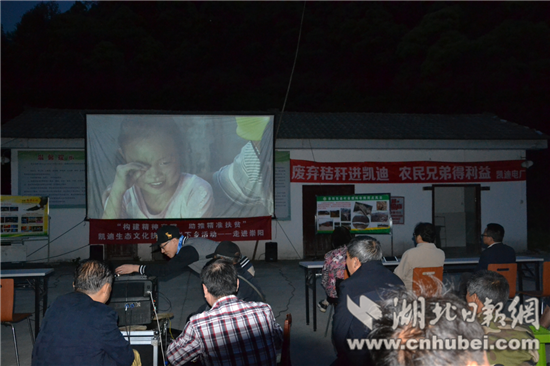 當(dāng)晚,在電影開始前播放了由陽光凱迪新能源集團(tuán)提供的秸桿回收與利用宣傳片,讓農(nóng)民朋友了解產(chǎn)業(yè)開發(fā)“變廢為寶”帶來的收益,播放了由赤壁市普法工作辦公室拍攝制作的《留守兒童》公益廣告片和邵陽花鼓戲《兒大女大》,現(xiàn)場(chǎng)還發(fā)放了由省扶貧辦編印的《扶貧到戶,畫說政策》宣傳手冊(cè)、秸桿回收利用好處多等資料,讓廣大農(nóng)民群眾進(jìn)一步了解黨和政府的扶貧政策,真正享受到政策的好處。電影下鄉(xiāng)活動(dòng)猶如一道文化大餐,不僅給群眾送去歡樂,而且還豐富了人民群眾的業(yè)余文化生活。