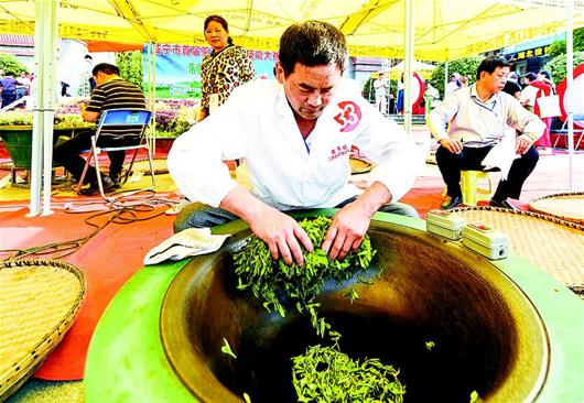 湖北日報訊 5日至6日,咸寧首屆手工制茶賽在潛山廣場舉行。這次比賽集聚了來自咸安、崇陽等6個縣市區(qū)的手工制茶高手,評比出10組“制茶王”,旨在推動手工制茶非物質(zhì)文化傳承,壯大茶產(chǎn)業(yè)。(視界網(wǎng) 雷平 攝)