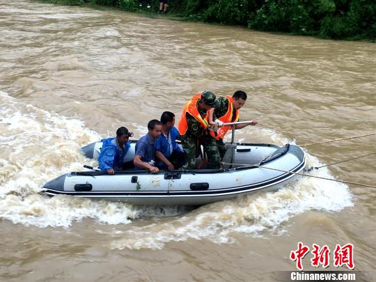 中新網(wǎng)咸寧8月13日電 (朱燕林 官易洲)13日6時23分,湖北咸寧市崇陽縣消防中隊接到報警稱,該縣銅鐘鄉(xiāng)佛嶺村40人因山洪被困山上。接警后,消防官兵攜水面橫行艇、救生拋投器以及大繩等工具前往營救被困人員。