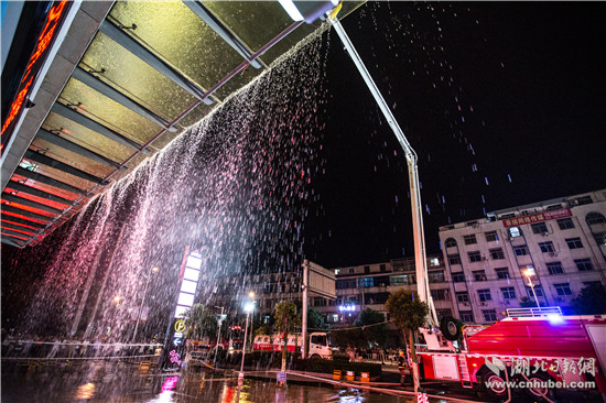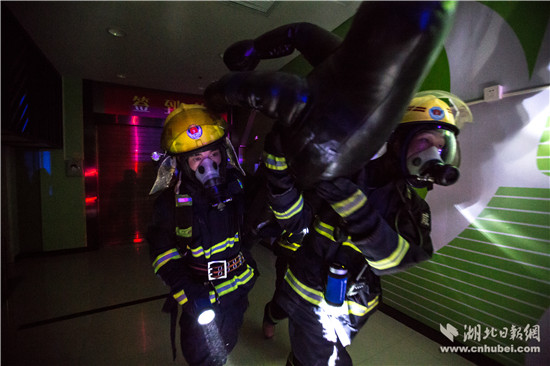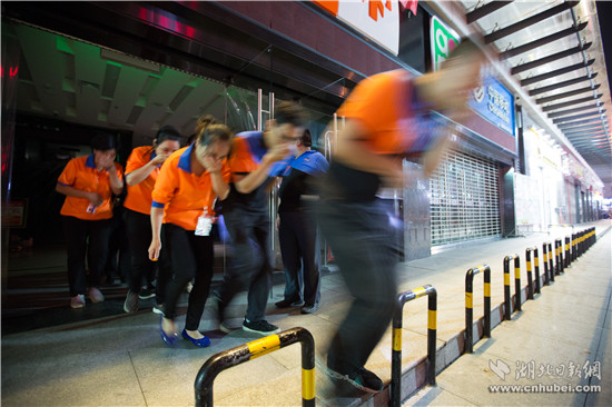 晚8時,通城縣建筑體量最大的城市綜合體——三合中百購物廣場內,燈火通明,熙熙攘攘。忽然,警鈴大作。廣場因電線短路發(fā)生“火災”,火勢迅速蔓延,大量人員被困。警情就是命令。廣場內4個微型消防站立即按照預案,疏散廣場內部人員,并啟動固定消防設施,阻止火勢蔓延。