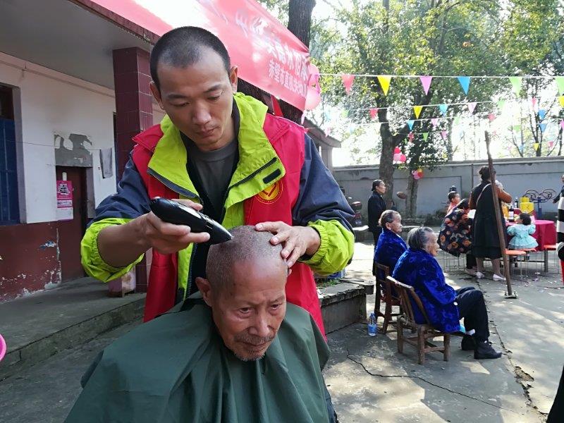 當(dāng)天上午8時,志愿者們走進福利院。一下子來這么多人,老人們高興得合不攏嘴。拉完家常,志愿者們開始分工做服務(wù),有搭舞臺的,有準備食材做菜、做飯、包餃子的、有擺桌椅板凳的、有分配水果零食的、有為老人理發(fā)、按摩、修指甲的、中醫(yī)院的護士免費給老人做體檢、小朋友為老人端茶等。