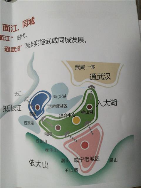 與2010版的城市發(fā)展規(guī)劃不同,咸寧將由“臨山簇林”時(shí)代邁向“擁湖面江”時(shí)代,未來咸寧將按照“依大山、入大湖、抵長江、通武漢”的發(fā)展路徑,同步實(shí)施武咸同城發(fā)展戰(zhàn)略。