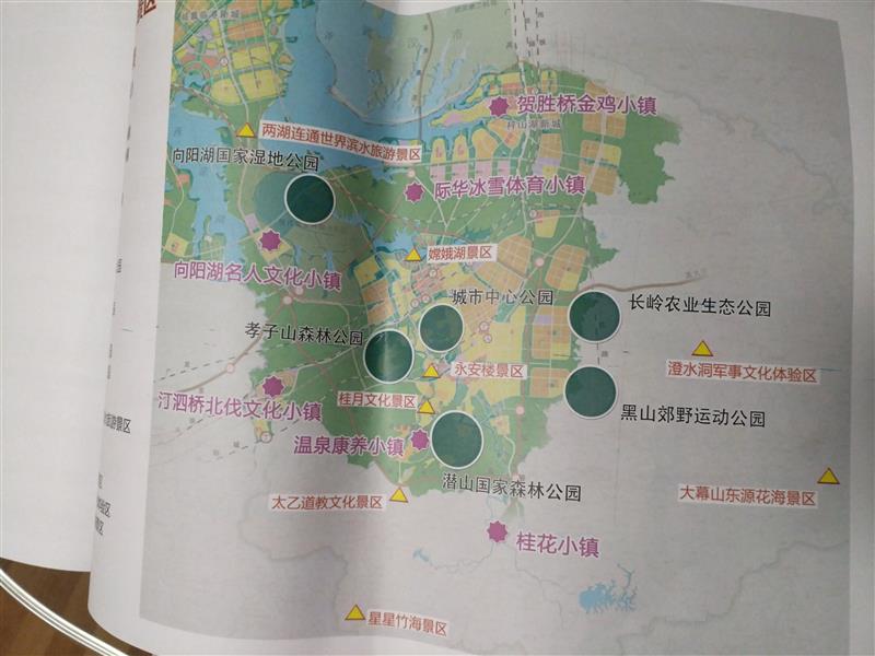 六園:向陽湖國家濕地公園、孝子山森林公園、潛山國家森林公園、城市中心公園、黑山郊野運(yùn)動(dòng)公園、長嶺農(nóng)業(yè)生態(tài)公園。