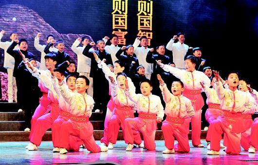 “野無遺賢,萬邦咸寧;首出庶物,萬國咸寧……”12月19日,由省委宣傳部、省教育廳、省廣播電視臺聯(lián)合主辦的“同聲誦經(jīng)典——2017湖北省‘起點閱讀·朝讀經(jīng)典’校園巡回展演活動”走進咸寧。當天下午,在咸寧市會議中心,稚嫩的童聲、整齊的朗誦,配舞臺水墨畫的背景,讓在場的近千名中小學生如入詩畫之境?!斑筮髲?fù)唧唧,木蘭當戶織。不聞機杼聲,唯聞女嘆息……”一首《木蘭詩》讓觀眾們猶如置身于北朝的烽煙中,青年花木蘭敢于擔當?shù)木褡屓司磁?,值得當代青少年學習借鑒。