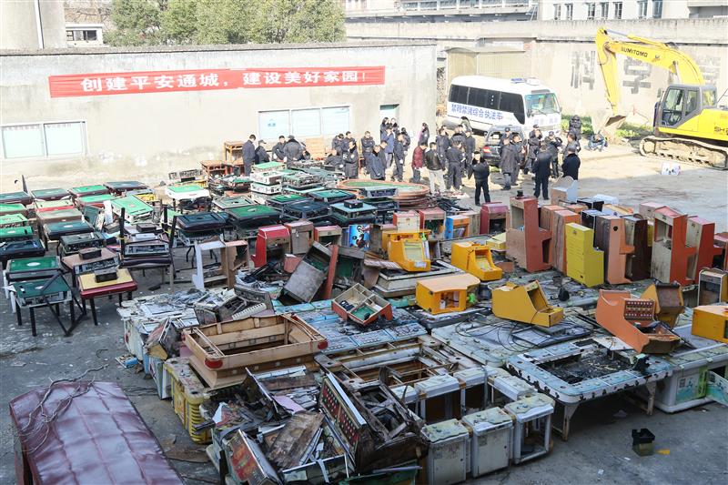 湖北日?qǐng)?bào)訊(記者陳嶼、通訊員劉建平、吳忠勇)12月20日上午10時(shí)許,隨著指揮人員一聲號(hào)令,從通城各鄉(xiāng)鎮(zhèn)收繳的152臺(tái)涉賭電子游戲機(jī)、186臺(tái)麻將機(jī)被集中銷(xiāo)毀。