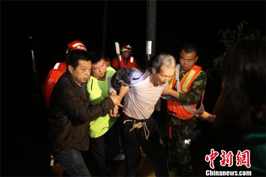 在黃沙鎮(zhèn)萬家鄉(xiāng)上泥湖村,被困村民大多是老人。救援人員攜帶救生圈、大繩、救生衣到達受災房屋,發(fā)現(xiàn)現(xiàn)場水深已達3米至4米,且水下環(huán)境復雜,積水深處水深達5米左右。面對狂風暴雨,消防官兵挨家挨戶搜救,將被困人員逐個轉(zhuǎn)移至安全地帶。