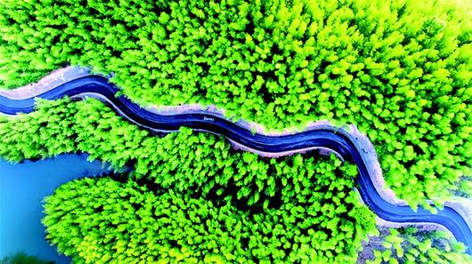 湖北日?qǐng)?bào)訊 4月19日,空中鳥(niǎo)瞰咸寧咸安區(qū)雙溪橋鎮(zhèn)至大幕鄉(xiāng)的扶貧公路。剛剛鋪裝瀝青的公路穿過(guò)白云山萬(wàn)畝竹海,被譽(yù)為當(dāng)?shù)刈蠲类l(xiāng)村公路。咸安區(qū)投資1億多元,對(duì)這段近20公里的鄉(xiāng)村公路按照二級(jí)公路標(biāo)準(zhǔn)進(jìn)行改造,路基寬度達(dá)到8.5米。目前,主體工程基本完工,路面刷黑施工已經(jīng)完成了一半。