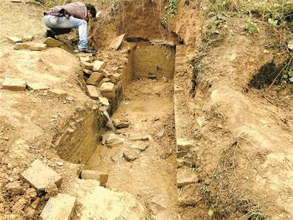 昨日上午,楚天都市報記者驅車來到該村,被盜的古墓離孫師傅家約有1公里路程,他帶著記者翻山來到現(xiàn)場。記者現(xiàn)場看到,該墓在一條公路邊上,墓穴已被挖開,長約3米,寬約70厘米,墓室由青磚砌成。青磚比普通磚要薄,有的青磚上還有花紋。