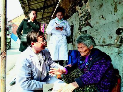 “耿婆婆好!我們來看您了。”在一座老房子前,86歲的耿良英老人正在曬太陽。看到劉醫(yī)生,她手指著胸口說:“我的胃病又犯了,還頭暈,正想給你們打電話呢?!眲⑨t(yī)生仔細(xì)詢問,量體溫、測血壓,看老人體溫、血壓都正常,就叮囑老人按時服藥,并讓護(hù)士小尹在老人常備藥的包裝上寫清用法,隨后兩人繼續(xù)巡診。每月固定巡診兩次,隨時接受病人及家屬咨詢,緊急情況隨叫隨到。這是他們提供簽約家庭醫(yī)養(yǎng)服務(wù)內(nèi)容的標(biāo)配。