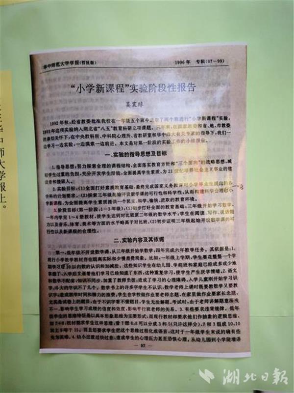 1992年秋,時任赤壁市實驗小學(xué)校長的吳震球從一年級五個班中選取兩個班進(jìn)行“小學(xué)新課程”實驗,從三年級開始學(xué)數(shù)學(xué),此項實驗還曾納入我省“八五”教育科研立項課題。1998年小學(xué)畢業(yè)考試,實驗班學(xué)生數(shù)學(xué)平均分高于普通班3-5分。但由于人事變動,當(dāng)年的實驗并未結(jié)題,此項實驗也無疾而終。