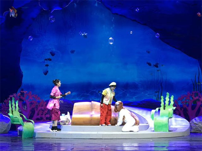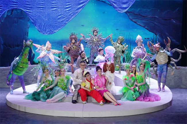 《浮出水面》講述了未來人類因一次地震而沉入海底生活,小男孩“歡歡”一家在未來世界認識到環(huán)境污染的嚴重,在中華鱘“奔奔”的指引下浮出水面,最后重回陸地建設家園的故事,劇情將大量音樂舞蹈與科學知識結合,涵蓋垃圾分類、人體急救、阿基米德原理、火箭噴射等多種科學知識。整場演出亮點紛呈。