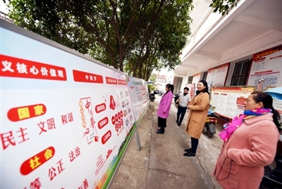 “傳統(tǒng)經(jīng)典墻”“核心價(jià)值觀墻”“美麗鄉(xiāng)村墻”“廉政文化墻”“精準(zhǔn)扶貧墻”……一道道體現(xiàn)“文明”“美德”“勤廉”等內(nèi)容的文化墻,傳遞著積極向上的社會(huì)正能量,成為新街鎮(zhèn)一道靚麗的風(fēng)景線。