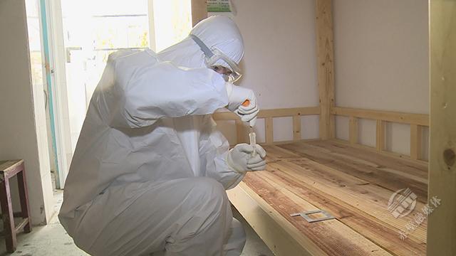 在隔離點內(nèi),消殺人員使用配制好的含氯消毒劑,對工作區(qū)域、房間、走廊、墻壁、地面、內(nèi)外環(huán)境、房間門把手、衛(wèi)生間等場所進(jìn)行滯留噴灑,進(jìn)行徹底有效的消毒處理。消毒完畢后,采樣人員按照操作規(guī)范對房間空氣、門把手、洗手池等處進(jìn)行采樣,帶回實驗室檢測。