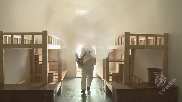 機電學(xué)校集中隔離點是赤壁市較早清空的隔離點之一。3月10日,記者來到機電學(xué)校,疾控中心的工作人員正在這里開展消殺工作。