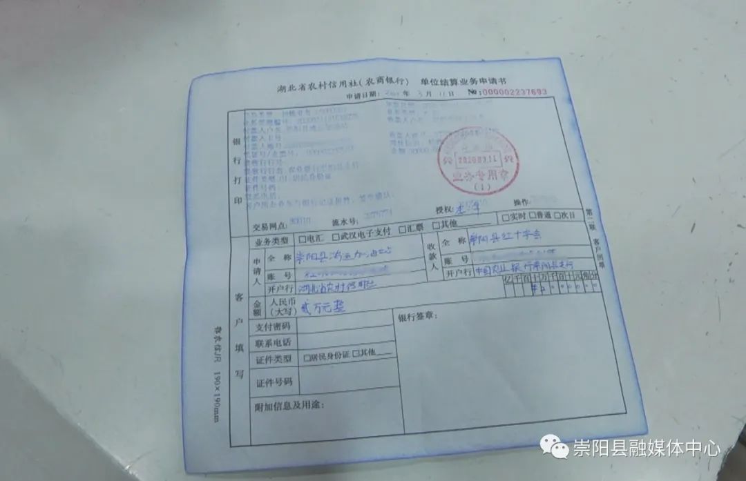 作為一位普通市民,吳淑君懂得感恩、心存大義。她認(rèn)為自己一家人有幾個(gè)病號(hào),如果沒有國家醫(yī)保救助的好政策,那將是雪上加霜,困難重重?,F(xiàn)在國家有難,理應(yīng)為國家效力。她想到了捐款2萬元,可是手中僅有年前醫(yī)保為她報(bào)銷的15000多元醫(yī)藥費(fèi)。于是,她動(dòng)員兒子兒媳拿出了5個(gè)孫子的壓歲錢,才湊齊了2萬元整。由于不會(huì)用手機(jī)銀行轉(zhuǎn)賬,加之疫情防控期間不能出門,直到3月11日,崇陽縣所有商業(yè)銀行開門營業(yè),她才揣著2萬元現(xiàn)金走向了縣農(nóng)商銀行……