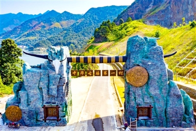 瑤祖故里大觀園內(nèi),古瑤壘石門樓,蘊天地靈氣,攬關山萬重。天然青石壘砌的梯形門樓,古色古香,錯落有致。