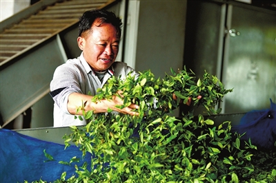 在軍營鑄就了永不服輸精神的吳海燕,近處請不到人,他就開著車去遠(yuǎn)處請人,中午給他們安排飯,晚上送他們回家,工資日結(jié)。“家門口管理茶園,不僅一個月有3600塊錢收入,還照顧了父母和孩子?!必毨魠墙膽迅屑?。
