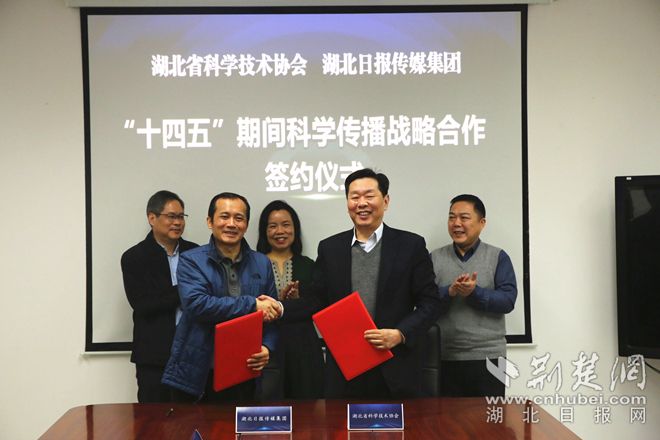 荊楚網(wǎng)客戶端—荊楚網(wǎng)消息(記者謝頤、陳雅俊 通訊員安明山)普及科學(xué)知識,倡導(dǎo)科學(xué)方法,傳播科學(xué)思想,弘揚科學(xué)精神。1月27日,湖北省科學(xué)技術(shù)協(xié)會與湖北日報傳媒集團簽訂“十四五”期間科學(xué)傳播戰(zhàn)略合作協(xié)議。協(xié)議明確:雙方聚焦主責(zé)主業(yè),充分發(fā)揮各自優(yōu)勢,推進“十四五”期間全面深入合作,增強科學(xué)傳播的影響力和覆蓋面,為實現(xiàn)湖北省2025年公民科學(xué)素質(zhì)建設(shè)目標(biāo)提供有力支撐。
