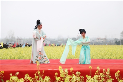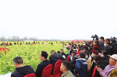 精彩的文藝演出、極具地方風(fēng)情的民俗表演和國(guó)家非物質(zhì)文化遺產(chǎn)提琴戲演唱,與花海交相輝映,為前來觀賞的人們帶來了絕美的視覺盛宴。開幕活動(dòng)結(jié)束后,開始游玩賞景,游客們或全家出動(dòng),或情侶相攜,或友人相伴,邊感嘆油菜花的美,邊呼朋引伴一起拍照留念,人花相映襯,美不勝收。除了賞花,大家還紛紛品嘗特色美食,購(gòu)買當(dāng)?shù)靥厣r(nóng)產(chǎn)品。