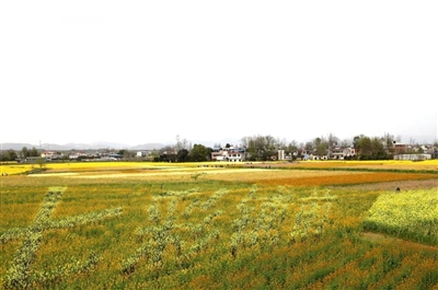 海中翻涌;花叢中,蜜蜂、蝴蝶穿梭其間,像一個(gè)個(gè)小精靈在花間飛舞。油菜花綿延相綴,似花毯,又似錦緞,形成一幅迷人的鄉(xiāng)村田園畫卷。