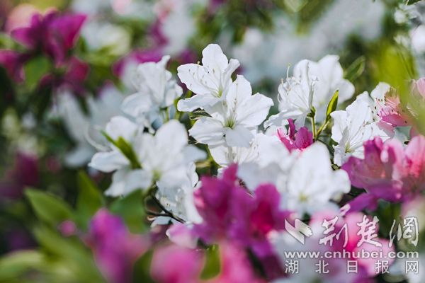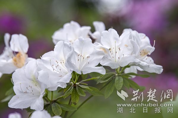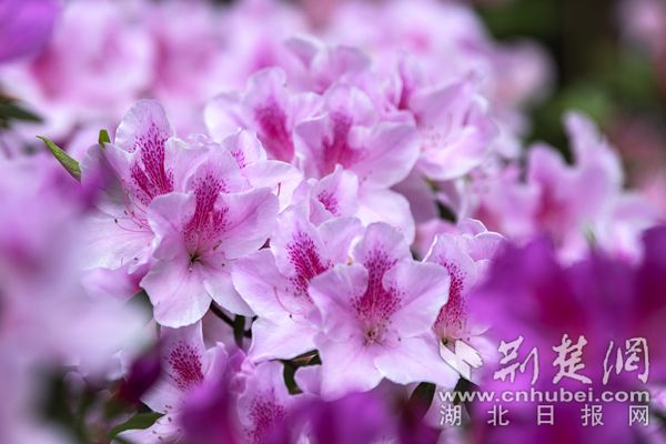 杜鵑花色艷麗,武漢植物園的杜鵑除紅色、紫色、粉色、白色等單色外,還有綠色杜鵑和復(fù)色杜鵑花。從國外引進(jìn)的綠色杜鵑品種“綠色光輝”,花朵小巧玲瓏,色如碧玉,十分罕見。復(fù)色杜鵑“皇冠”花朵白粉相間,粉紅色鑲邊,素雅又不失顏色,一掃杜鵑的艷麗姿態(tài),既清新又迷人。