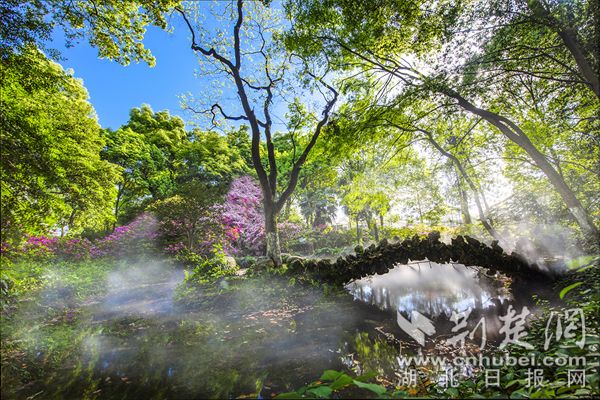 荊楚網(wǎng)(湖北日報(bào)網(wǎng))訊(通訊員陳長麗)最美人間四月天,“花中西施”杜鵑接力登場成為春花主力。在武漢植物園,5萬株杜鵑恣意開放,園內(nèi)各處杜鵑簇?fù)碇︻^,織錦堆繡,漫山紅遍,美不勝收。園區(qū)重新修繕提升了杜鵑園霧噴景觀,云霧繚繞中,萬千杜鵑燦若云霞若隱若現(xiàn),宛若人間仙境。