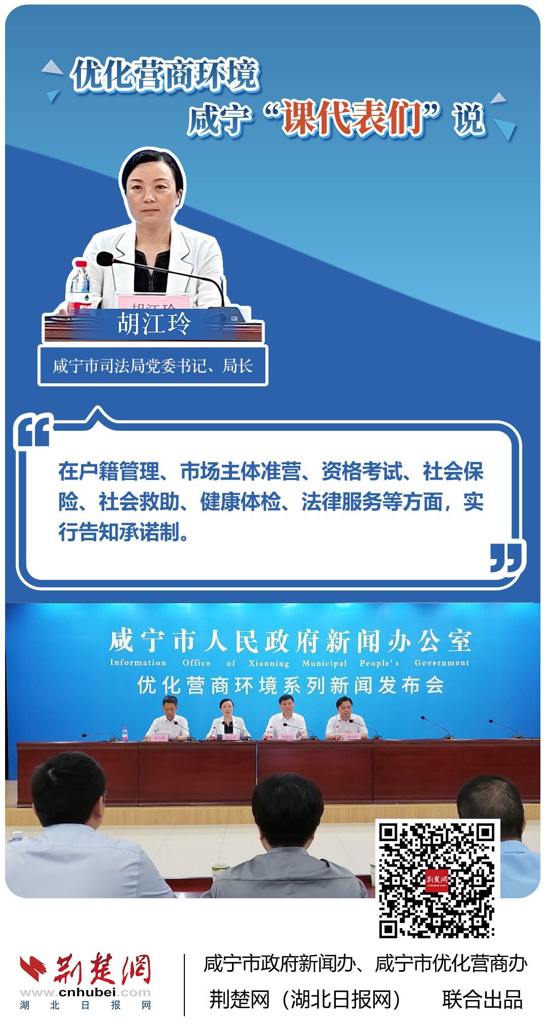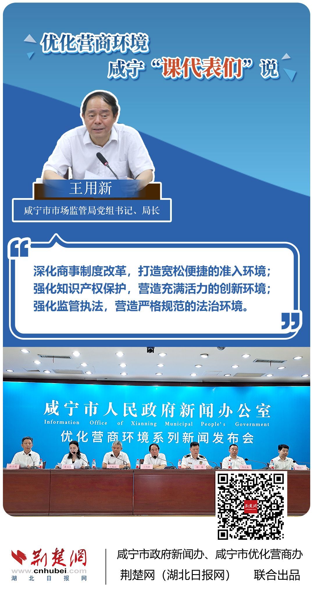 荊楚網(wǎng)(湖北日?qǐng)?bào)網(wǎng))訊(記者 王焱堯 田城 呂鑒蕾 通訊員 張永紅 程蒙)打造寬松便捷的準(zhǔn)入環(huán)境,將服務(wù)部門(mén)“一把手”推到窗口,實(shí)行消防行政許可辦理“雙軌制”,加大誠(chéng)信體系建設(shè)和知識(shí)產(chǎn)權(quán)保護(hù)力度……7月20日,咸寧市直單位9名優(yōu)化營(yíng)商環(huán)境發(fā)言人亮相新聞發(fā)布會(huì),圍繞“優(yōu)化營(yíng)商環(huán)境”這一主題,談做法、論經(jīng)驗(yàn)、說(shuō)打算。