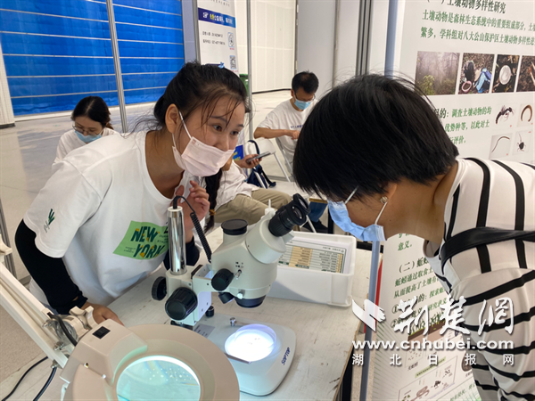 “蚯蚓是人類的好朋友?!眮碜灾锌圃何錆h植物園功能生態(tài)組的林小元正在展臺前指導(dǎo)市民通過顯微鏡觀察土壤和蚯蚓。她邊調(diào)試儀器邊介紹,蚯蚓是土壤動物里最常見類群之一,它們在土壤生態(tài)系統(tǒng)中既是“消費”者,也是“創(chuàng)造”者,它們通過取食、消化、排泄、分泌和挖掘洞穴等活動對土壤產(chǎn)生重要影響,被稱為“土壤工程師”。