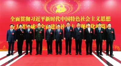 12月7日下午,新當(dāng)選的中共咸寧市第六屆委員會(huì)常務(wù)委員會(huì)委員集體合影。 咸寧日?qǐng)?bào)全媒體記者 袁燦 攝
