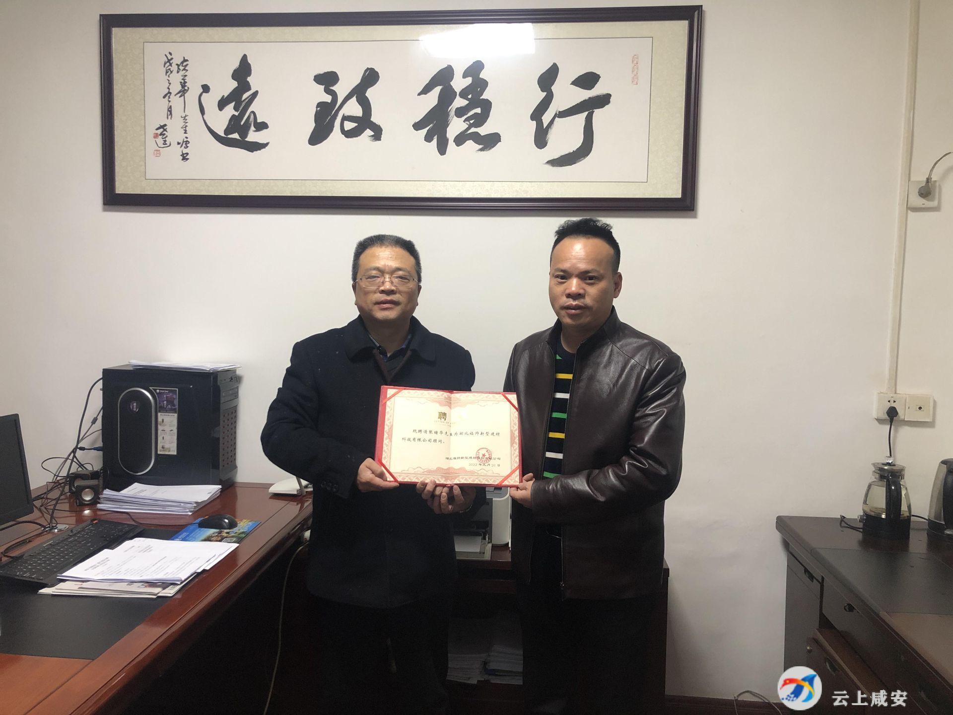 云上咸安報道(融媒體記者 劉正杰 李宇 特約記者 李星)日前,湖北福帥新型建材科技有限公司董事長吳選勤帶著公司的聘任證書,來到區(qū)科經局,聘請該局局長張緒華為公司顧問。這張沒有報酬的聘書背后,是一份沉甸甸的責任,是科經局有呼必應、應必有果的“店小二”精神,是區(qū)委、區(qū)政府不遺余力持續(xù)優(yōu)化營商環(huán)境的結果。