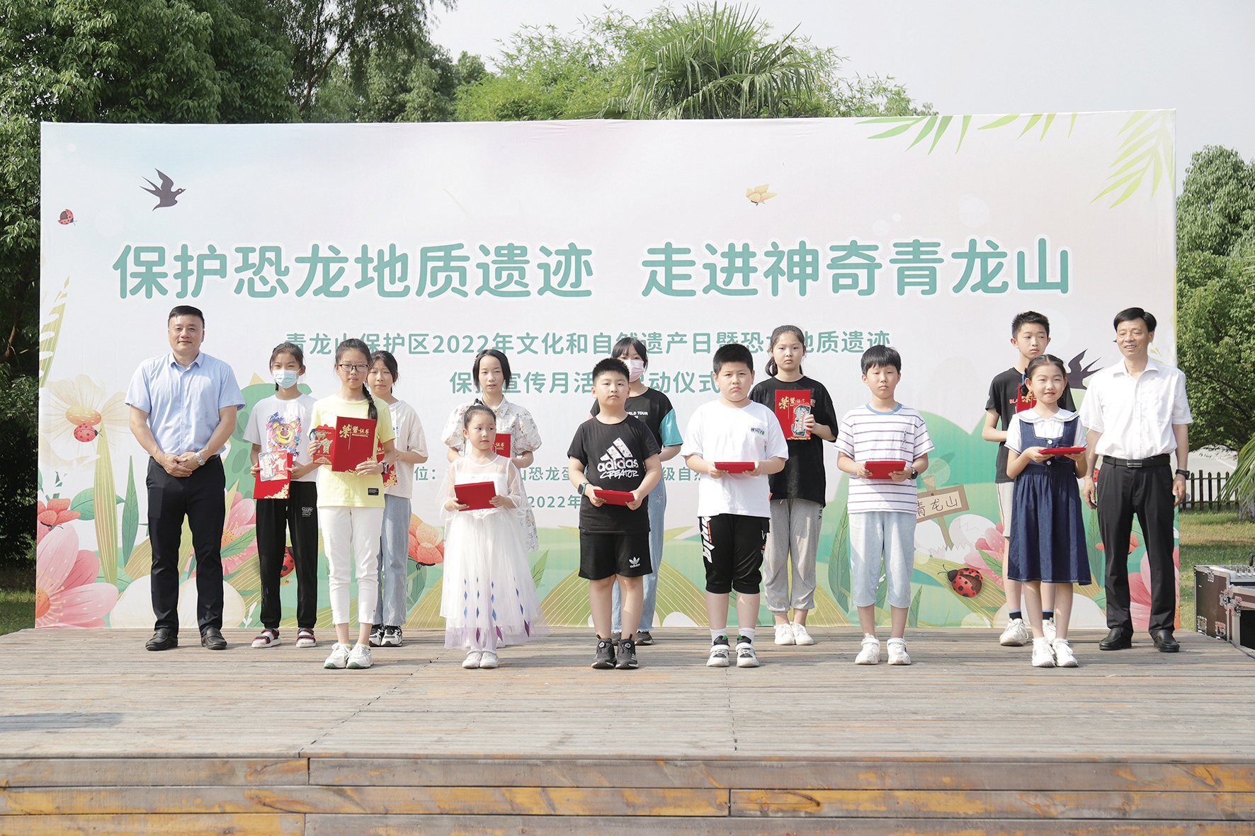本報(bào)訊 6月11日是我國第6個文化和自然遺產(chǎn)日。為了更好保護(hù)青龍山恐龍蛋化石群這一世屬罕見的自然遺產(chǎn),喚醒大家珍愛地球、保護(hù)環(huán)境的意識,當(dāng)日,湖北青龍山管理局在青龍山地質(zhì)公園舉行了2022年文化和自然遺產(chǎn)日暨恐龍地質(zhì)遺跡保護(hù)宣傳月活動啟動儀式。來自十堰日報(bào)社小記者團(tuán)、媽媽幫社群的200余位學(xué)生、家長朋友在現(xiàn)場參加活動。
