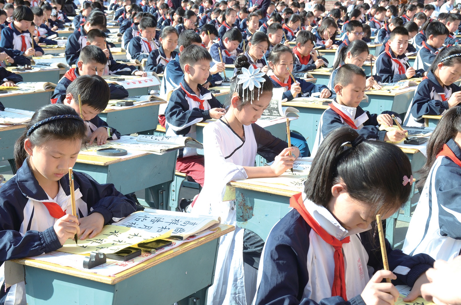 書寫是一個循序漸進的過程,在孩子小學(xué)階段有意識地培養(yǎng),讓孩子養(yǎng)成良好的書寫習(xí)慣,其將會受益一生。“我們學(xué)校每天堅持中午練20分鐘書法,孩子們學(xué)習(xí)書法的第一個內(nèi)容,就是坐姿訓(xùn)練。”東風(fēng)52小學(xué)校長龔明說。