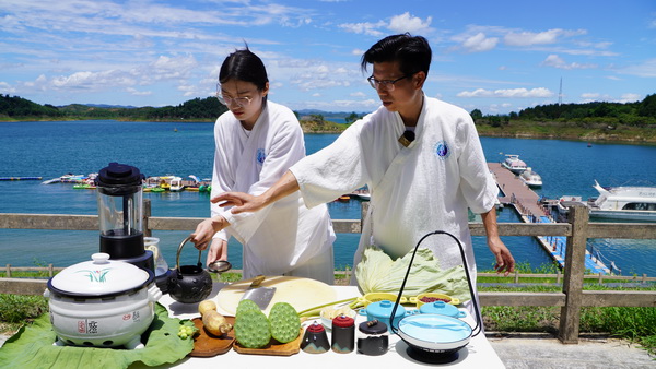 “大暑”是一年中天氣最熱、濕氣最重的時節(jié),此時節(jié)養(yǎng)生保健的重點是“防暑”和“祛濕”。泛舟歸來,武當(dāng)文化學(xué)者與愛好者一起習(xí)練武當(dāng)活骨養(yǎng)生功,品嘗新鮮嫩蓮制成的鮮藕涼茶、蓮子荷葉粥,感悟武當(dāng)養(yǎng)生文化的魅力。