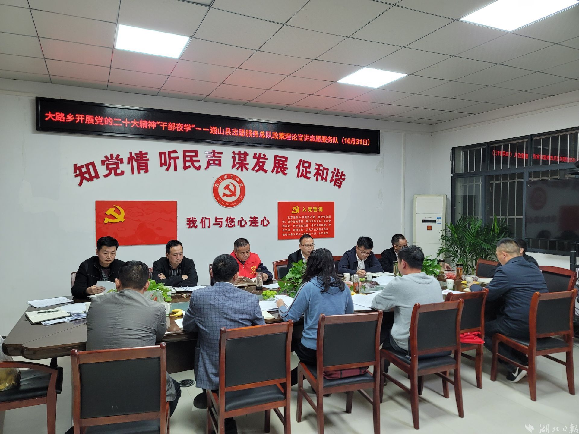 10月27日晚,通山縣委理論學習中心組率先在全縣開設(shè)“夜學班”,拉開了全縣黨員干部“夜學”帷幕。全縣各部門、各鄉(xiāng)鎮(zhèn)、各村灣相繼加入,以定時、定點、定主題機制,掀起“夜學”熱潮。