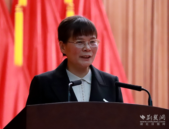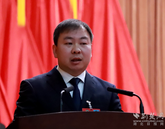 咸寧市政協(xié)黨組書(shū)記、主席梁細(xì)林作工作報(bào)告。黃錚 攝