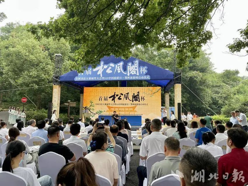 2024年5月19日,中國旅游日當(dāng)天,首屆“松風(fēng)閣”杯全國書法大賽頒獎(jiǎng)大會(huì)在鄂州市西山風(fēng)景區(qū)隆重舉辦,省、市領(lǐng)導(dǎo)為獲獎(jiǎng)代表頒獎(jiǎng)。與此同時(shí),現(xiàn)場(chǎng)邀請(qǐng)專家進(jìn)行了“跨越千年,對(duì)話黃庭堅(jiān)——黃庭堅(jiān)松風(fēng)閣書法的價(jià)值及對(duì)鄂州文化的塑造”對(duì)話。