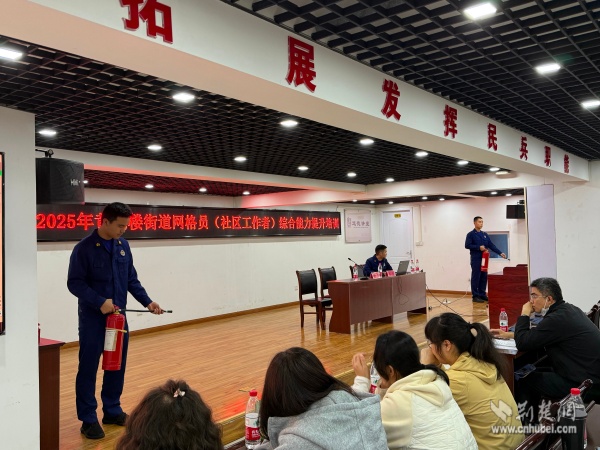 街道還邀請黃鶴樓消防救援站開展“消防法與消防實操”培訓,詳細解讀《消防法》相關條款,現(xiàn)場演示滅火器使用、初期火災撲救等技能,通過分組實操訓練,切實增強網(wǎng)格員消防安全隱患排查和應急處置能力。