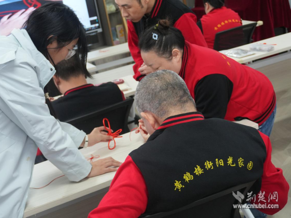 在中國結(jié)編織互動(dòng)中,志愿者手把手教學(xué)員編織寓意吉祥的中國結(jié)。編織過程既鍛煉了手部協(xié)調(diào)能力,又通過互幫互助增進(jìn)了彼此情誼,現(xiàn)場充滿歡聲笑語?;顒?dòng)尾聲,青年志愿者為每位學(xué)員送上自己親手制作的中國結(jié),傳遞美好祝福。