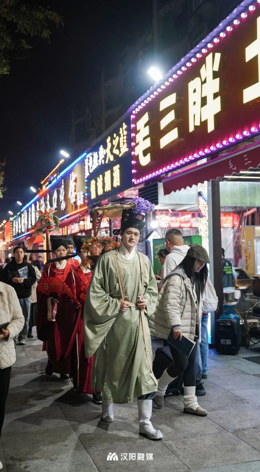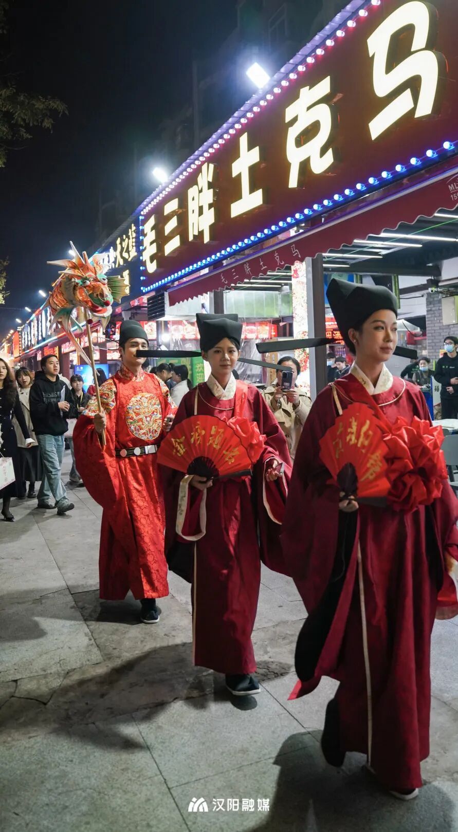 今晚,頭戴烏紗帽、身著飛魚服的“狀元郎”化身“首席引烤官”,帶領(lǐng)舉人秀才巡街互動,一句“客官骨骼清奇,必是吃貨轉(zhuǎn)世”逗樂全場。更勁爆的是,“知音漢陽”視頻號直播間狂撒福利:無敵燒烤、毛大佑、老油條等10家名店“限時霸王餐”線上直送,解鎖免費(fèi)擼串的快樂!