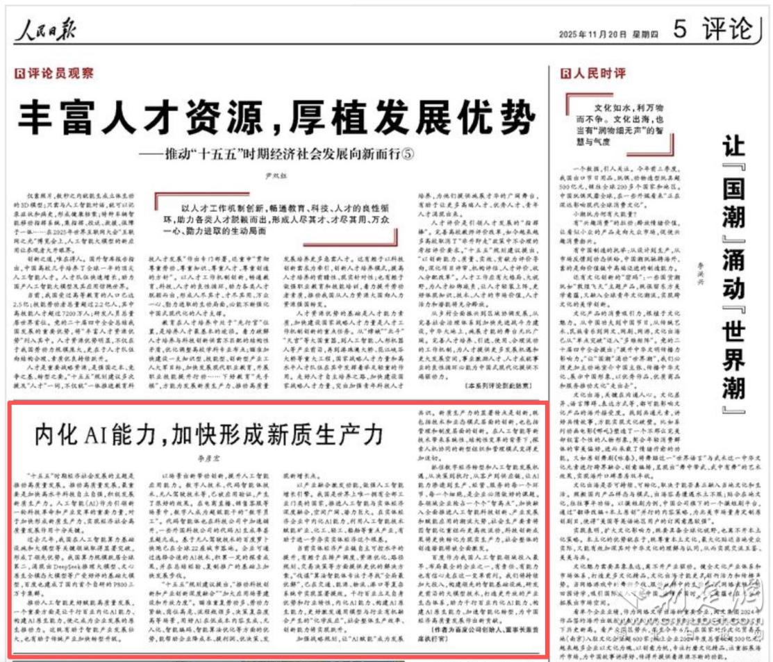 荊楚網(wǎng)(湖北日?qǐng)?bào)網(wǎng))訊(通訊員 杜軒)11月20日,百度創(chuàng)始人、董事長兼首席執(zhí)行官李彥宏在《人民日?qǐng)?bào)》發(fā)表題為《內(nèi)化AI能力,加快形成新質(zhì)生產(chǎn)力》的署名文章。他指出,推動(dòng)人工智能更好賦能高質(zhì)量發(fā)展,一個(gè)重要方面是讓千行百業(yè)內(nèi)化AI能力,構(gòu)建AI原生能力,使之成為企業(yè)發(fā)展的原生推動(dòng)力。