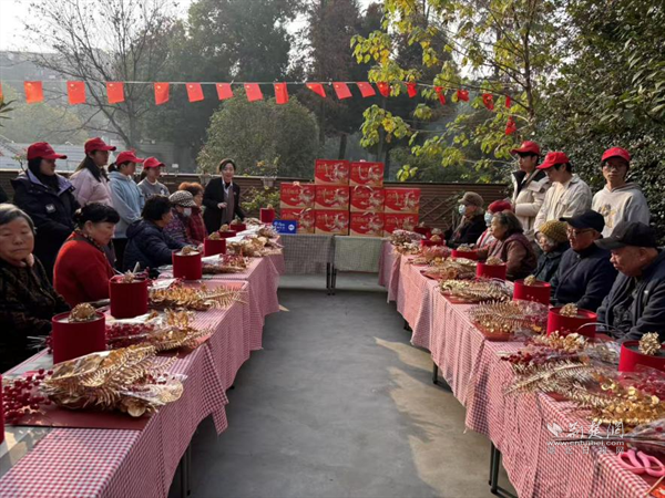 為鍛煉老人動(dòng)手能力與思維敏捷度,活動(dòng)設(shè)趣味手工環(huán)節(jié)。老人們?cè)谏鐓^(qū)工作人員與武大學(xué)生志愿者指導(dǎo)下,將干花、仿真花細(xì)心插進(jìn)裝飾桶?,F(xiàn)場(chǎng)笑聲不斷,老人們舉著作品展示、合影,既收獲成就感,又拉近鄰里距離,傳遞社區(qū)溫情。