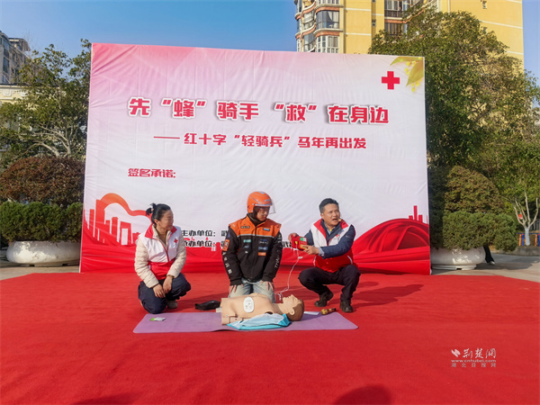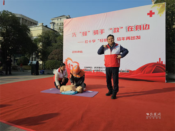 荊楚網(wǎng)(湖北日報網(wǎng))訊(通訊員 王瑜婷)1月15日,武昌區(qū)南湖街道寶安社區(qū)開展“先‘蜂’騎手,‘救’在身邊——紅十字‘輕騎兵’馬年再出發(fā)”主題活動。市、區(qū)紅十字會及南湖街道相關(guān)負責人,外賣、快遞小哥代表齊聚現(xiàn)場,共同見證這支由新就業(yè)群體組成的紅十字“輕騎兵”志愿服務(wù)隊再啟新程。