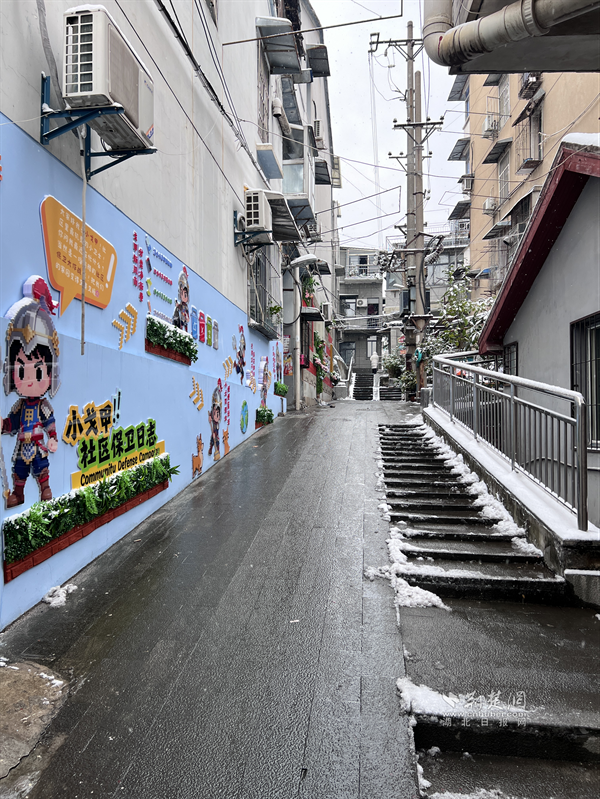 20日清晨,糧道街胭脂路部分路段冰雪堆積,步行、車行存在安全隱患。沿街商戶主動設立板凳、雪糕筒提醒路人繞行,并拿起掃把清掃路邊積雪,方便路人安全通過?!斑@是武漢的第一場雪,雖然很美,但路滑容易摔跤,我們早點把門口掃干凈,大家走路就放心了?!币晃簧虘衾习逡贿吂讱庖贿呎f道。這一把把掃帚不僅掃去了積雪,更暖了人心,商戶們用最樸實的行動,在寒冬街頭筑起了一道溫暖的安全防線,展現(xiàn)了“社區(qū)是我家”的主人翁精神。